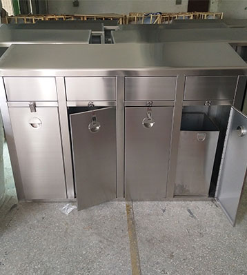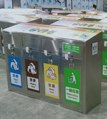 果皮箱四分類垃圾桶廠家由可回收物、其他垃圾、廚余垃圾、有害垃圾四種常見生活垃圾收集容器組成,可絲印最新垃圾分類標識,也可根據客戶需求定制絲印內容。核心部件可模壓成型不脫焊不易破損堅固耐用,箱門帶鎖可保障內桶耐用性,四分類投口果皮箱自動復位防異味散發。全桶身不銹鋼制作的垃圾箱還具有防火功能,金屬亮澤,焊點平整光滑整體高雅美觀,無利口不傷手應用范圍廣;內外表面光潔,減少垃圾殘留,易于清潔;可根據客戶需求選配鍍鋅內桶或玻璃鋼內桶。