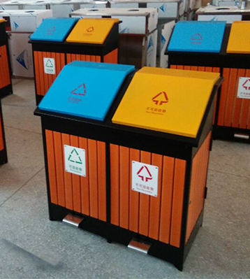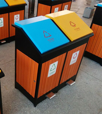 產(chǎn)品材質(zhì):欣方圳腳踏式分類鋼木垃圾箱采用現(xiàn)代化批量制作工藝