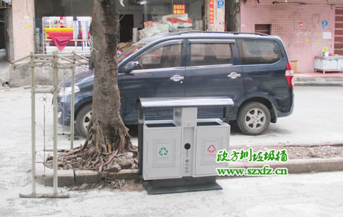 ? 廣州市新塘鎮(zhèn)街道辦采購F49戶外分類環(huán)保垃圾桶,按照15天交貨日期,如期完工,送貨上門。此款F49戶外分類環(huán)保垃圾桶規(guī)格為:1000*350*1000.鋼制垃圾桶屋檐桶頭設(shè)計,防止雨水傾入內(nèi)桶。鋼制垃圾桶中間圓形煙頭投口,有害物投口,充分利用空間。桶兩邊都絲印有,標(biāo)志,字體,不可回收字樣,采用紅顏色。 標(biāo)志,字體,可回收字樣,采用綠顏色。巧妙的設(shè)計,結(jié)合城市人性化,更好服務(wù)城市居民。