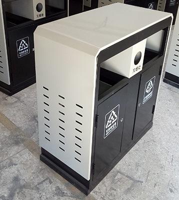 產品材質:物業戶外分類鋼制垃圾桶采用現代化批量制作工藝,選用優質冷軋鋼板,核心部件模壓成型不脫焊不易破損堅固耐用。表面經過除油、噴砂防銹處理后,再進行酸洗磷化處理,鋼制桶表面清理后整體進行靜電噴涂或烤漆處理,靜電噴涂是經過流水線高溫固化爐固化后再出爐冷卻,漆面色澤耐久,防腐防銹。