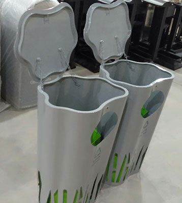 產品材質:異形戶外定制果皮箱采用現代化批量制作工藝,選用優質冷軋鋼板,核心部件模壓成型不脫焊不易破損堅固耐用。表面經過除油、噴砂防銹處理后,再進行酸洗磷化處理,鋼制桶表面清理后整體進行靜電噴涂或烤漆處理,靜電噴涂是經過流水線高溫固化爐固化后再出爐冷卻,漆面色澤耐久,防腐防銹。