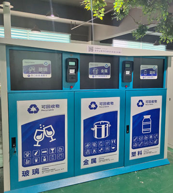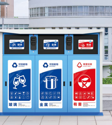 功能特點:三分類智能環保垃圾箱從源頭做好玻金塑紙織物廚余有害其他8分類居民生活垃圾收集,配240升大容量塑料內桶,內置智能自動稱重模塊,后臺時刻檢測回收箱垃圾重量,滿溢自動停用功能并自動發送預警信息及時清運;帶感光燈控開關傍晚會自動開啟照亮功能;通過掃描二維碼/刷卡才可打開箱門投放,垃圾投放后自動稱重投口箱門自動復位,有效防止異味散發清潔環保。