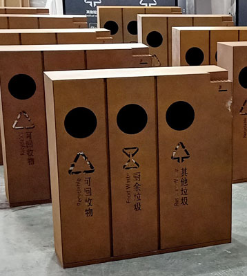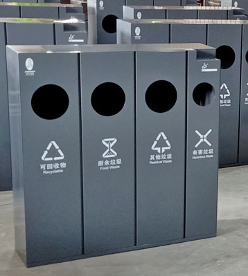產品材質:四分類果皮箱采用現代化批量制作工藝,選用優質冷軋鋼板,核心部件模壓成型不脫焊不易破損堅固耐用。表面經過除油、噴砂防銹處理后,再進行酸洗磷化處理,鋼制桶表面清理后整體進行靜電噴涂或烤漆處理,靜電噴涂是經過流水線高溫固化爐固化后再出爐冷卻,漆面色澤耐久,防腐防銹。