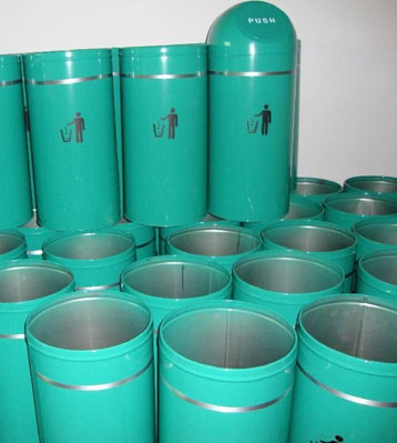產品材質:戶外高檔兩分類鋼制垃圾箱采用現代化批量制作工藝,選用優質冷軋鋼板,核心部件模壓成型不脫焊不易破損堅固耐用。表面經過除油、噴砂防銹處理后,再進行酸洗磷化處理,鋼制桶表面清理后整體進行靜電噴涂或烤漆處理,靜電噴涂是經過流水線高溫固化爐固化后再出爐冷卻,漆面色澤耐久,防腐防銹。