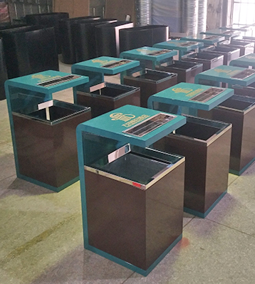 產品材質:酒店方形室內鋼制垃圾桶采用現代化批量制作工藝,選用優質冷軋鋼板,核心部件模壓成型不脫焊不易破損堅固耐用。表面經過除油、噴砂防銹處理后,再進行酸洗磷化處理,鋼制桶表面清理后整體進行靜電噴涂或烤漆處理,靜電噴涂是經過流水線高溫固化爐固化后再出爐冷卻,漆面色澤耐久,防腐防銹。