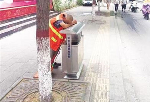 ? 這幾天,不少南陽的朋友刷微信時,會看到這樣一條信息——“在南陽市政府對面看到的一幕,環衛工實在太累了,趴在垃圾箱上睡著了。照片上可以看到,整條街被他打掃的一個煙頭都沒有……向環衛工致敬!”.jpg)