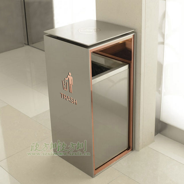 ??欣方圳的酒店精品不銹鋼垃圾桶相較于戶外垃圾桶來說更加的注重細節,更加的精致。不同于戶外垃圾桶只是簡單的桶加蓋子,這款C413不銹鋼垃圾桶配備的硬件更加的多,功能更加的齊全。從以下幾個部分可以看出來。